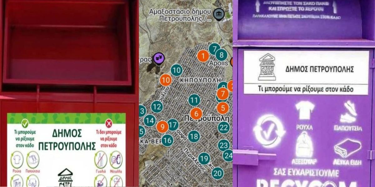 κόκκινους κάδους που υπάρχουν στον Δήμο Πετρούπολης.
