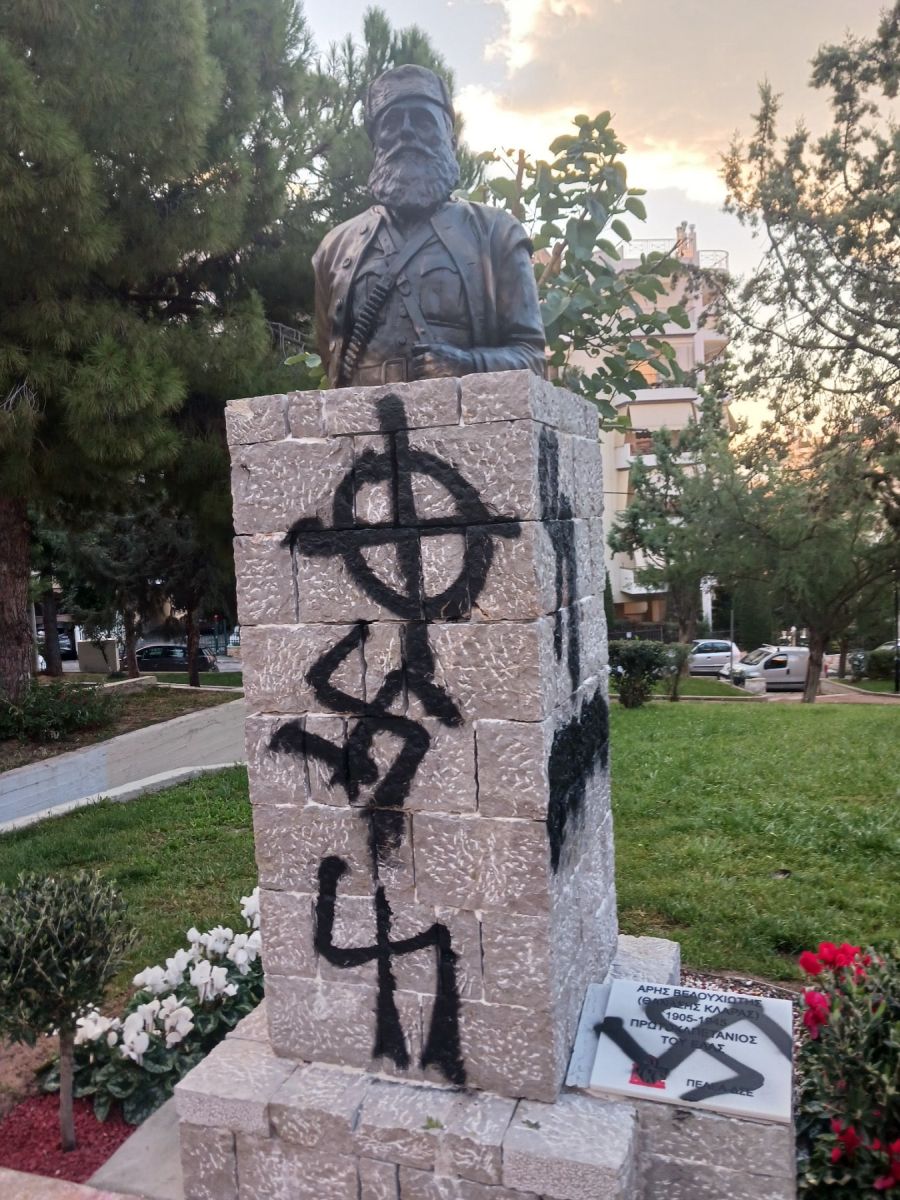 Καταγγελία για τη βεβήλωση της προτομής του Άρη Βελουχιώτη στην Πετρούπολη εξέδωσε η Τ.Ο. Δυτικών Συνοικιών της Κ.Ο.Α. του Κ.Κ.Ε.