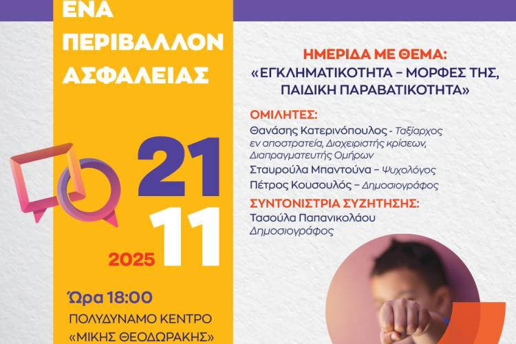 Ο Δήμος Ιλίου διοργανώνει ενημερωτική ημερίδα με θέμα «Εγκληματικότητα – Μορφές της, Παιδική Παρα