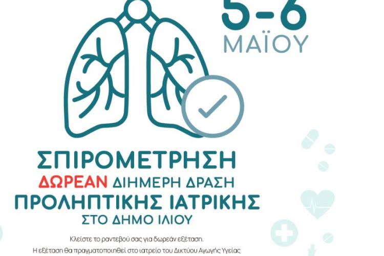 Ο Δήμος Ιλίου διοργανώνει ΔΩΡΕΑΝ ΔΙΗΜΕΡΗ ΔΡΑΣΗ προληπτικής εξέτασης σπιρ