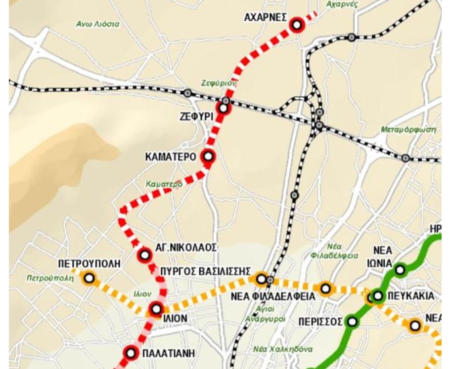 Παράλληλα, λίγο πριν το τέλος του 2024, σε εκδήλωση του Δήμου Αχαρνών όπου παρέστη η προηγούμενη πολιτική ηγεσία του Υπουργείου Υποδομών και Μεταφορών ανακοινώθηκε ότι σε μελλοντικό στάδιο η κόκκινη γραμμή θα φτάσει έως το Μενίδι, με τρεις ακόμη σταθμούς (Καματερό, Ζεφύρι, Αχαρνές).