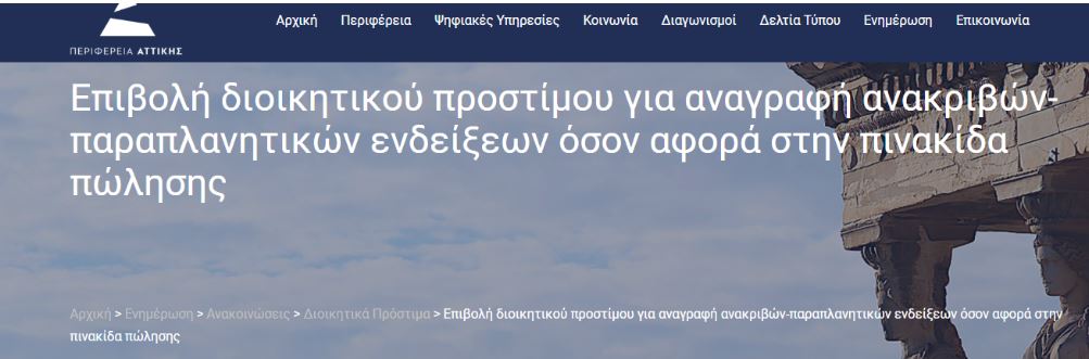 Η Ανακοίνωση επιβολής προστίμου δημοσιεύτηκε στον ιστότοπο της Περιφέρειας Αττικής.