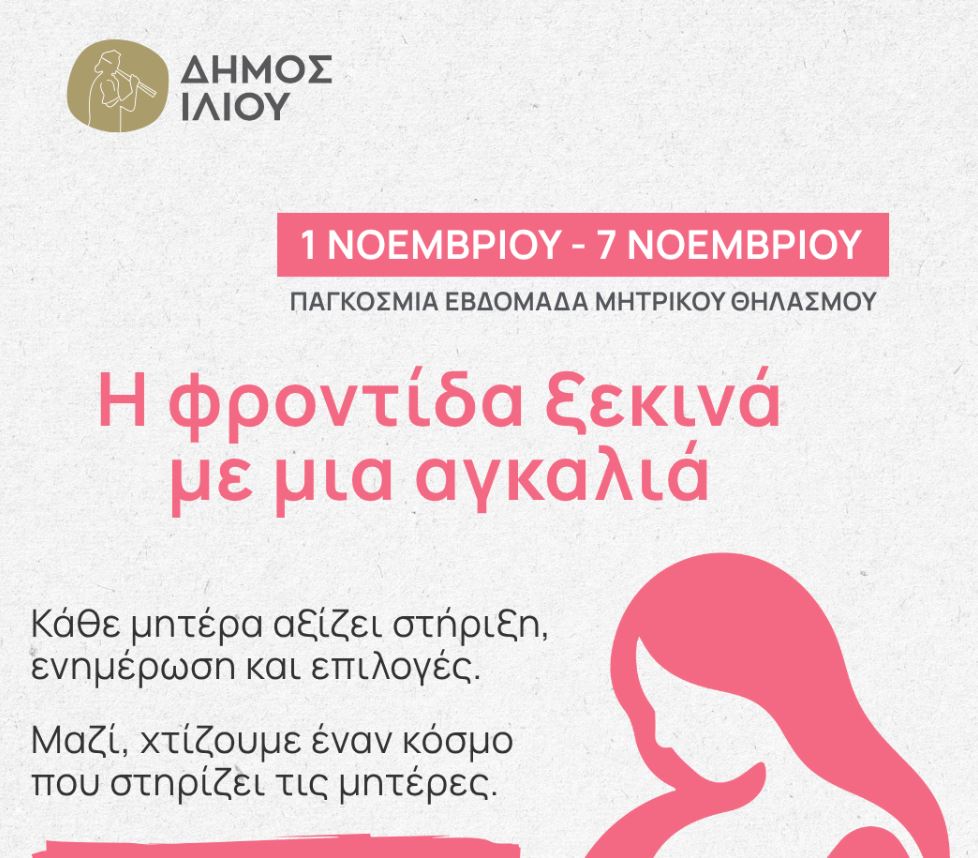 Με αφορμή την Παγκόσμια Εβδομάδα Μητρικού Θηλασμού, ο Δήμος Ιλίου διοργανώνει