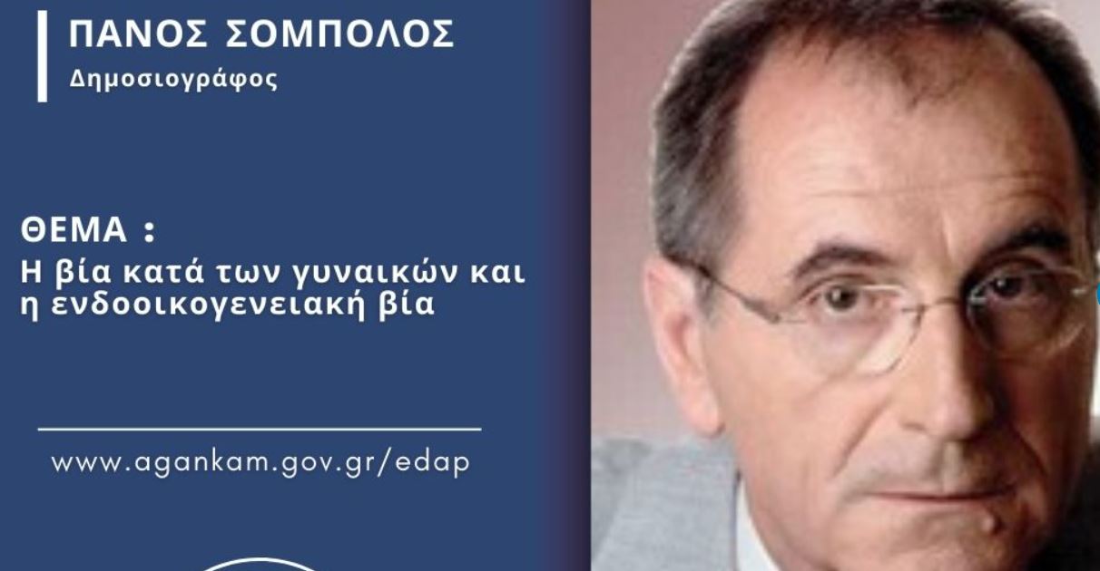Εισηγητής θα είναι ο δημοσιογράφος Πάνος Σόμπολος και το θέμα της διάλεξης θα είναι: «Η βία κατά των γυναικών και η ενδοοικογενειακή βία».