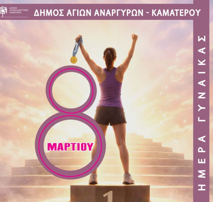 Ο Δήμος Αγίων Αναργύρων Καματερού διοργανώνει εκδήλωση ευαισθητοποίησης με αφορμή την Παγκόσμια Ημέρα Γυναίκας, την Κυριακή 8 Μαρτίου 2026 και ώρα 18:30, στο Κέντρο Τέχνης και Πολιτισμού «Μαρία Έλενα» (Αγίας Παρασκευής 40, Άγιοι Ανάργυροι).