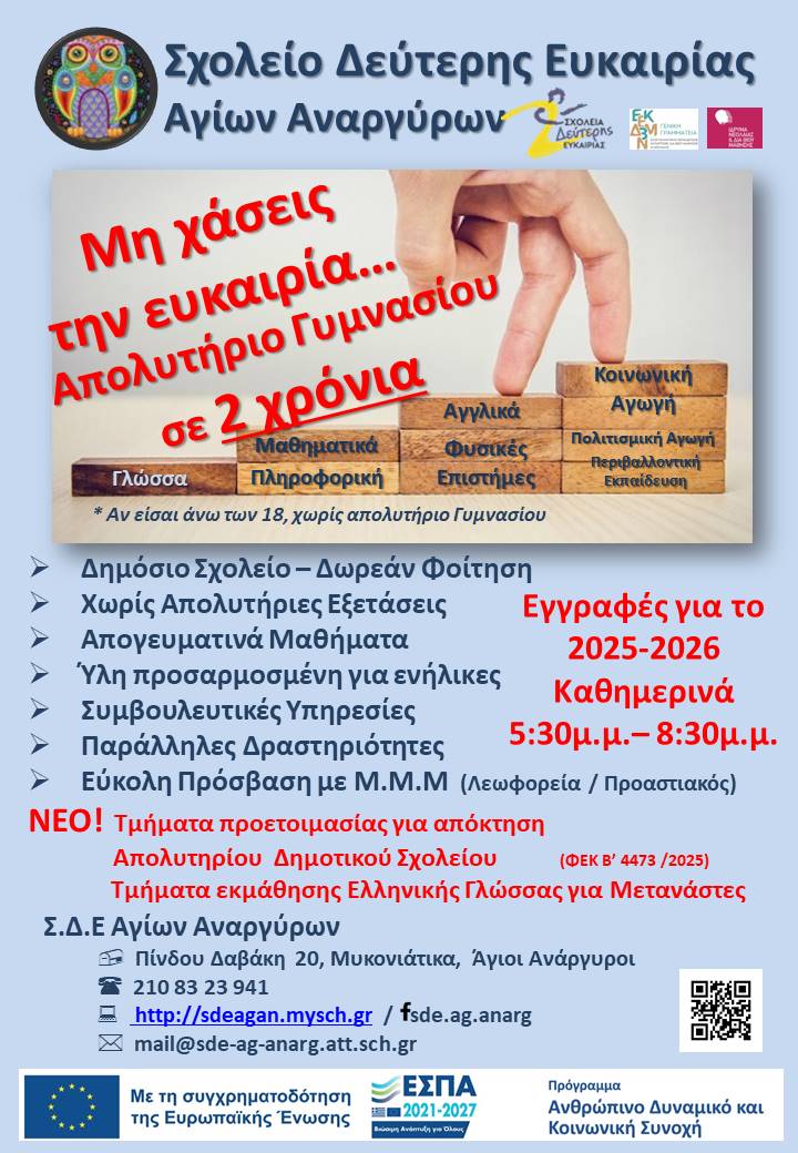 Ιστοσελίδα: https://www.sdeagan.mysch.gr/
