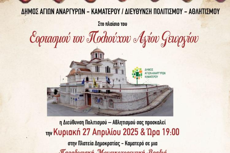Την Κυριακή 27 Απριλίου και ώρα 19.00 θα γιορταστεί ο Πολιούχος Άγιος Γεώργιος του Καματερού στην