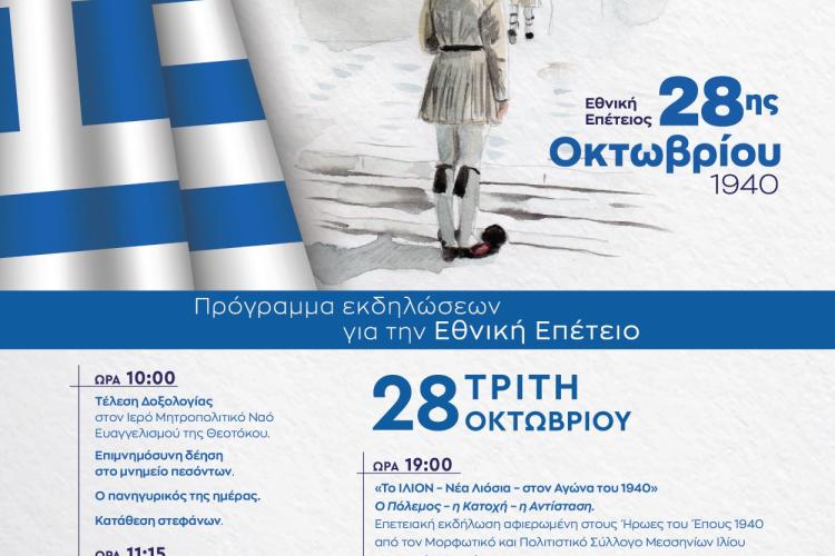Δείτε το πρόγραμμα των επετειακών εκδηλώσεων του Δήμου Ιλίου για την 28η Οκτωβρίου.