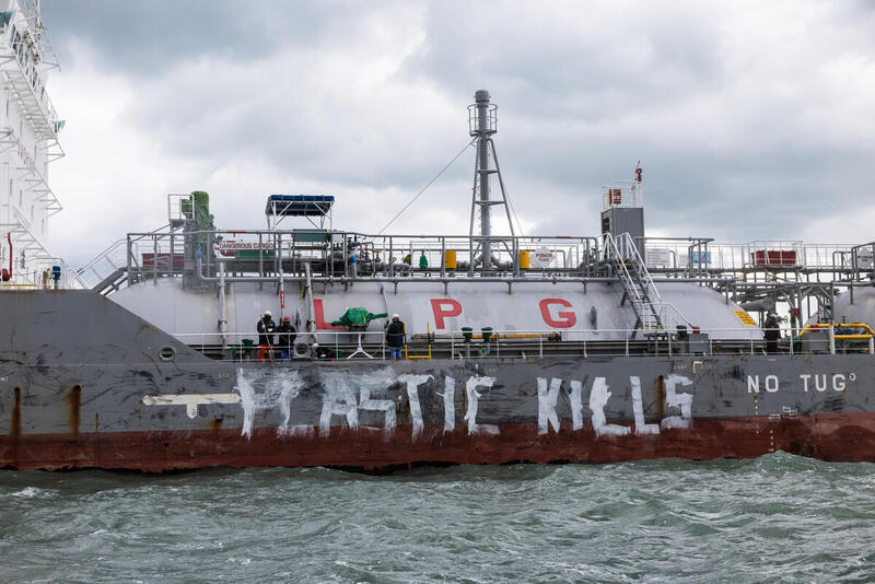 Η Greenpeace έστειλε δυνατό μήνυμα προς όλες τις κατευθύνσεις για την ανάγκη άμεσης συμφωνίας για μια ισχυρή Συνθήκη μέσω μιας ειρηνικής δράσης, που διήρκεσε τουλάχιστον 12 ώρες, ενάντια σε ένα φορτίο πετροχημικών το Σαββατοκύριακο που μας πέρασε. Το σκάφος μήκους 96 μέτρων Buena Alba ήταν προγραμματισμένο να φορτώσει προπυλένιο που παράγεται από ορυκτά καύσιμα, βασικό συστατικό για την παραγωγή πλαστικού, από το διυλιστήριο Hyundai Daesan, το οποίο βρίσκεται στο πετροχημικό συγκρότημα Daesan της Νότιας Κορέας.