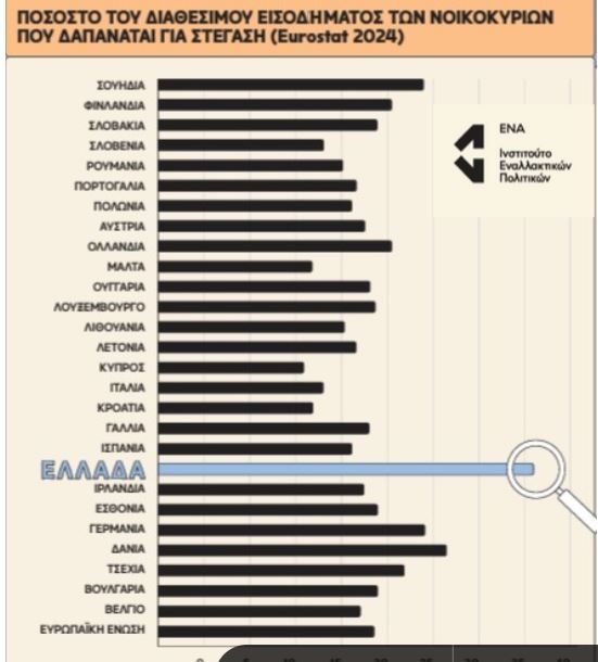 εισοδήματος των ελληνικών νοικοκυριών κατευθύνεται σε στεγαστικές δαπάνες, το μεγαλύτερο