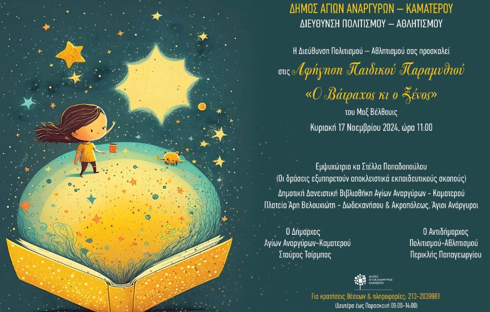 Την Κυριακή 17 Νοεμβρίου 2024 και ώρα 11.00 θα πραγματοποιηθεί η αφήγηση παραμυθιού «Ο Βάτραχος και ο Ξένος» στη Δημοτική Βιβλιοθήκη στην πλατεία Άρη Βελουχιώτη