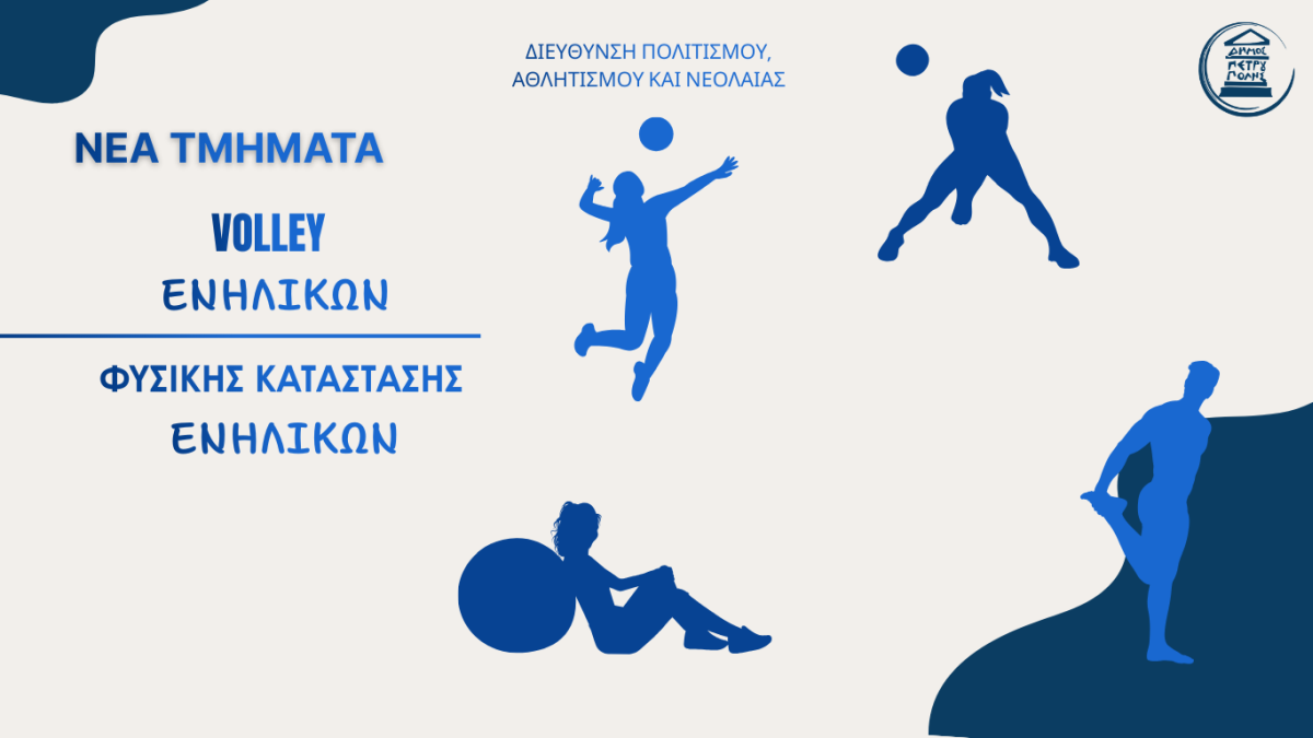 Συγκεκριμένα, συγκροτείται «Τμήμα Βόλεϊ Ενηλίκων», το οποίο θα πραγματοποιεί προπονήσεις τρεις φορές την εβδομάδα, πρωινές ώρες στο Κλειστό Γυμναστήριο «Νίκος Παξιμαδάς.
