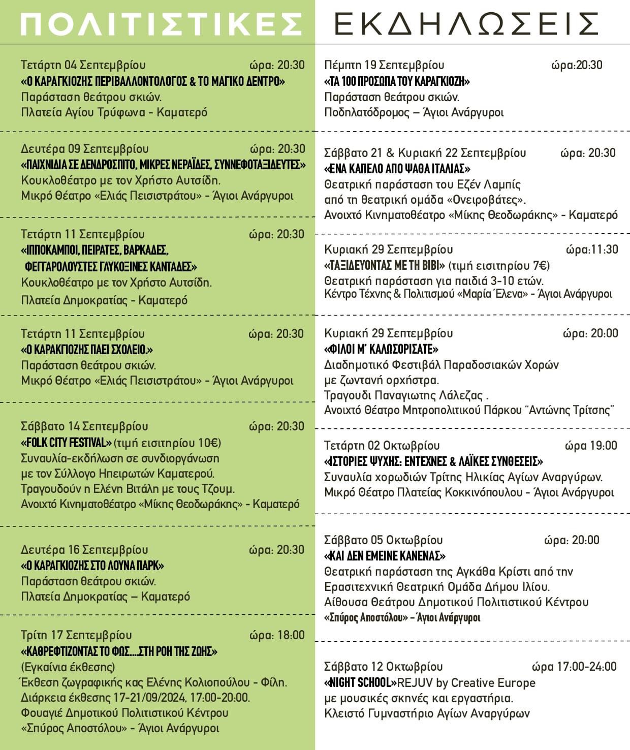 Πολιτιστικές εκδηλώσεις στην Δυτική Αθήνα για τον Σεπτέμβριο και Οκτώβριο 2024.